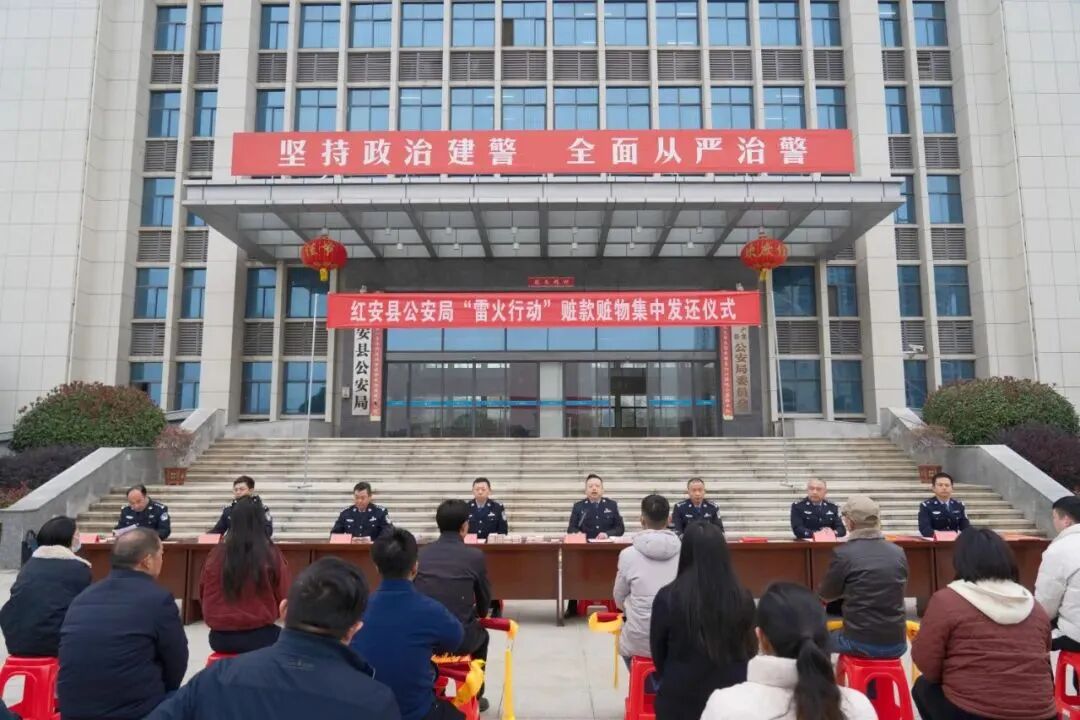 红安县公安局“雷火2024”打击整治突出治安问题专项行动退赃大会举行。现场返还现金60余万元,返还赃款赃物总价值280余万元。