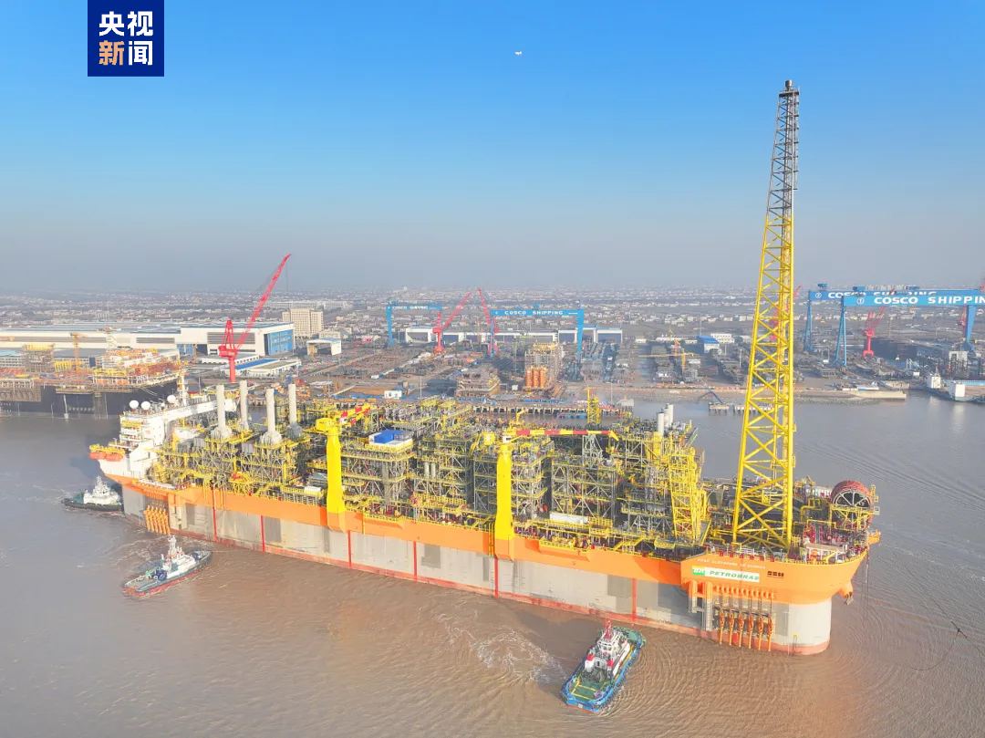 16日,新型“海上浮式生产储油船”从江苏启东长江码头交付离港,这是目前世界最大吨位、最大储油量的新型海上浮式生产储油装置,也被称为“海上移动炼油厂”。
