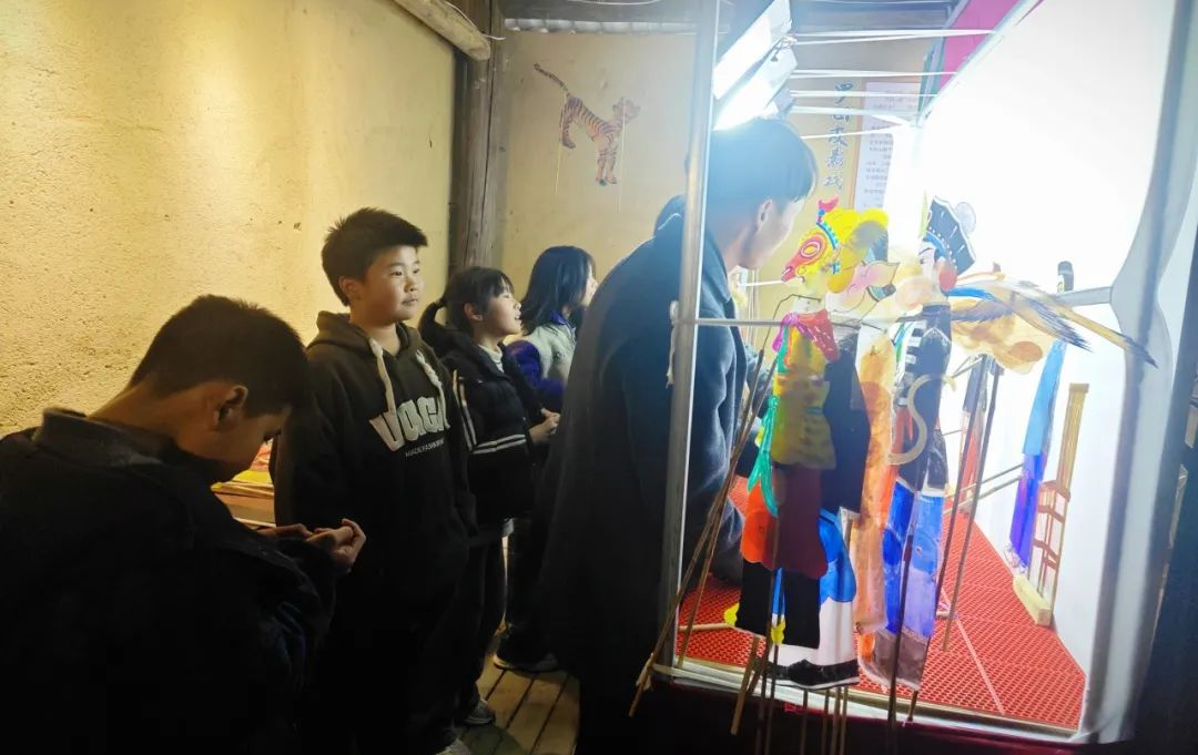 12月8日,三里畈镇苍葭冲“乡村希望书屋”小老师带孩子们观看皮影戏、打乒乓球。