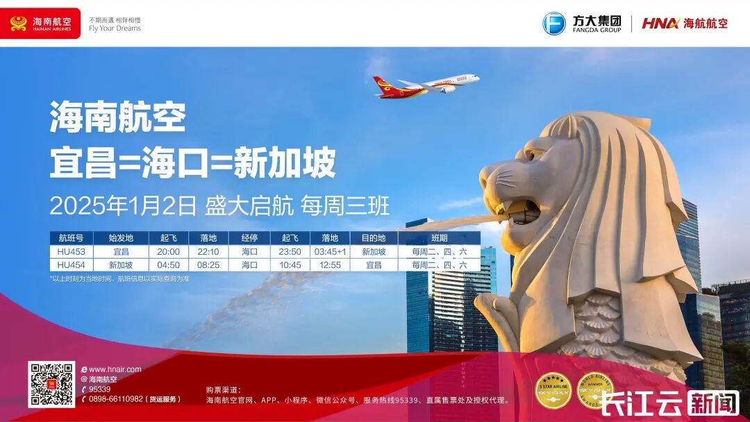 近日,记者从宜昌三峡国际机场获悉,2025年1月2日,三峡国际机场将开通宜昌⇋海口⇋新加坡国际客运航线,这也意味着宜昌将成为湖北第二个开通新加坡定期航线的城市。
