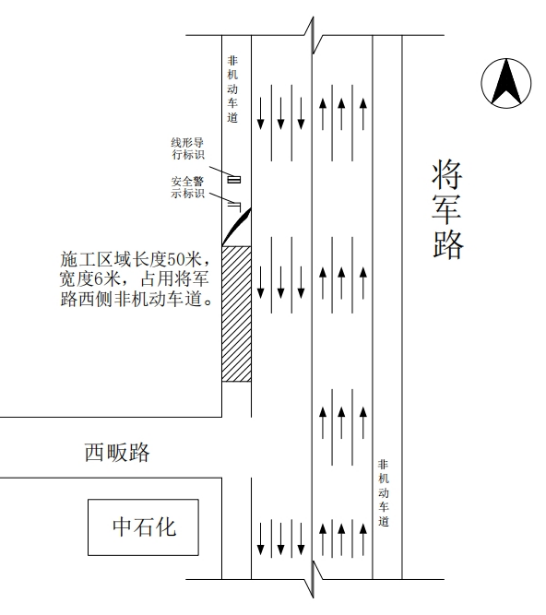 2.将军路,施工长度约50米,宽6米,占用非机动车道。管制时间:2024年12月24日至2025年1月20日