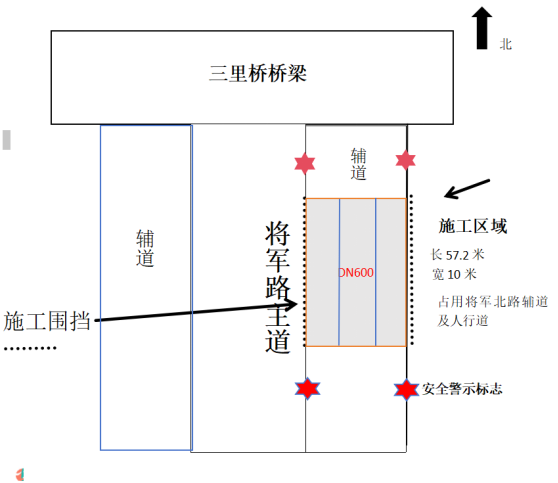 根据麻城市水环境治理一期项目雨污水管道施工安排,需对将军路等路段进行施工。为保障施工期间道路交通安全,公安交管部门对施工路段实行临时交通管制,现通告如下:一、管制路段及时间1.将军路,施工长度约57.2米,宽10米,占用辅道及人行道。管制时间:2024年12月24日至2025年1月20日