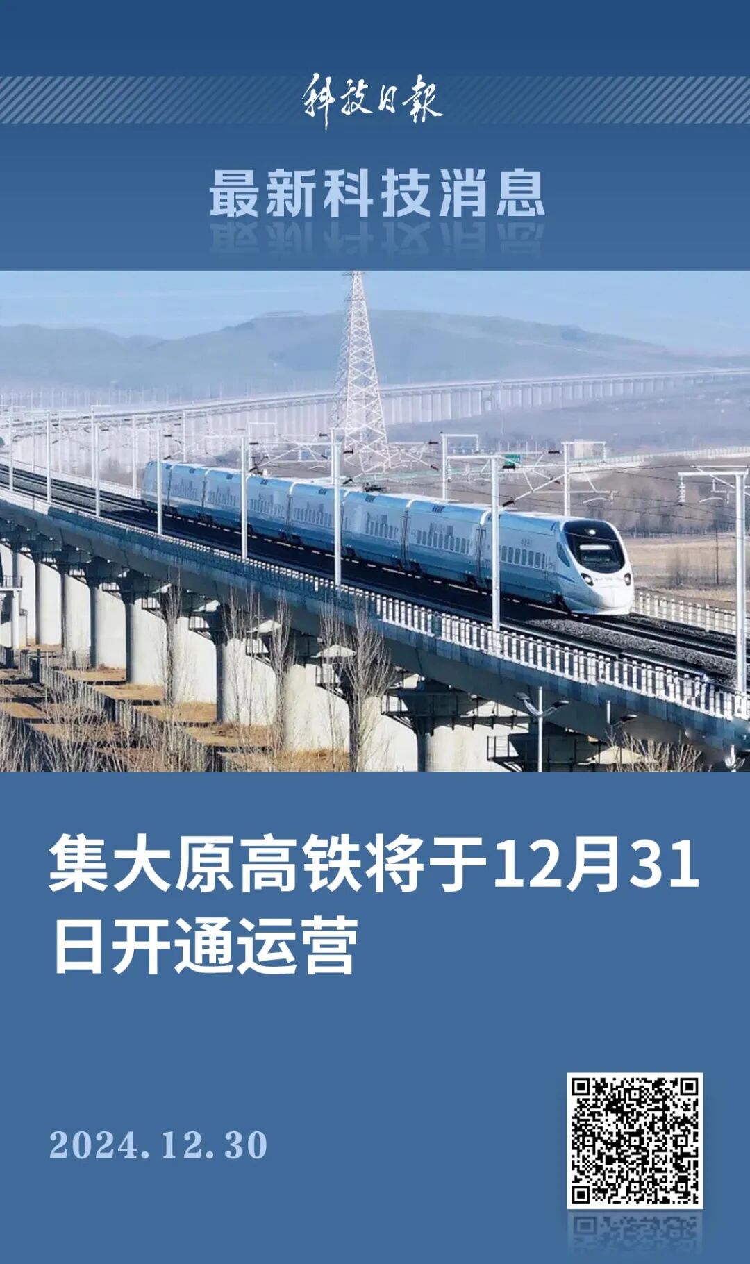记者从中国国家铁路集团有限公司获悉,连通内蒙古自治区和山西省的集宁经大同至原平高铁(以下简称“集大原高铁”)将于12月31日开通运营。届时,乌兰察布至大同南站最快40分钟可达,呼和浩特东至太原南站最快3小时12分钟可达,晋蒙两省区间新增一条高铁大通道。