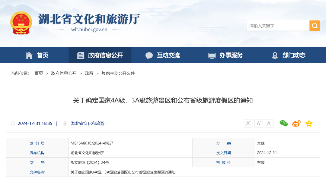湖北省文化和旅游厅发布《关于确定国家4A级、3A级旅游景区和公布省级旅游度假区的通知》,我市红安锦绣铜锣景区、英山毕昇纪念园、蕲春李时珍文化旅游区被确定为国家4A级旅游景区。(详情)
