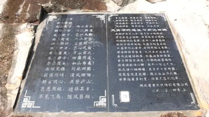 “楚黄耿氏”文化传承人、耿定向第十四世孙耿纪福介绍说:“我的家在天窝书院的山脚下,小时候就知道这个碑,但不知道刻的是什么内容。楚黄文化传媒一起来我们就反复试,在上面泼水,字明显就清晰了,我们就发现了‘愿言同心,共登此山。不见飞鸟,随风㠯(以)翔’。因为㠯是异体字,没有认出来,但是对照后,知道是这个字,随后楚黄文化传媒一起就进行考察,作了碑石简介,然后刻表以记,以永其传。”