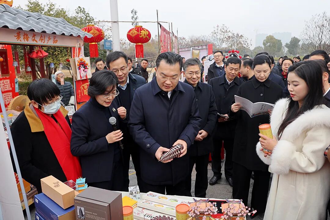 会前,市领导巡展文创产品展示展销现场,并观看评审了各县(市、区)文创产品推介和6部文化小剧。