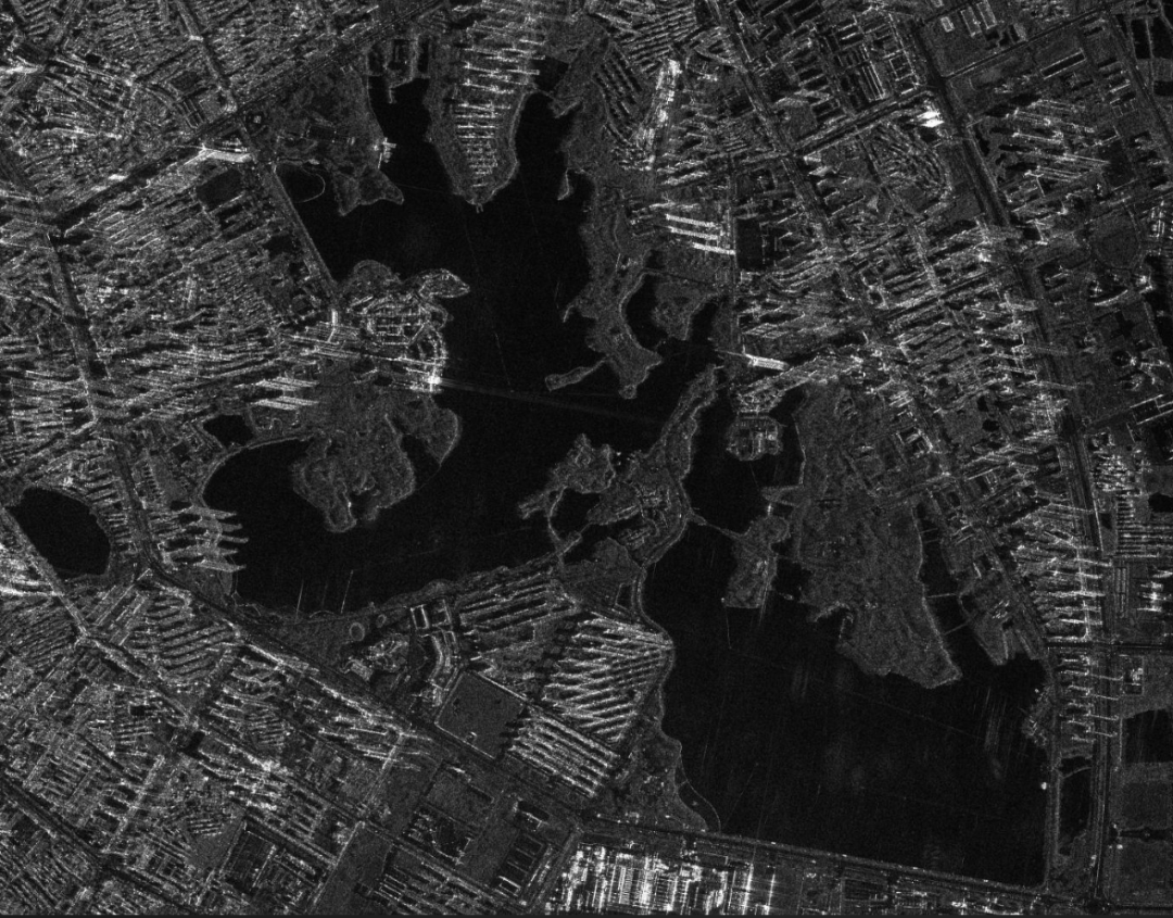 据悉,该影像拍摄地点位于长江黄冈市黄州区段。影像产品地形特征明显、地物纹理清晰、层次分明、微波散射特性明显、质量优异。从影像中可以非常清楚地看到国家AAAA级旅游景区、国家湿地公园遗爱湖广阔的水域范围;影像中,遗爱湖四周亮度高出许多,那是整齐排列的各类人工建筑,象征着黄冈市城镇化建设和经济发展取得的成绩;与之形成鲜明对比的是遗爱湖岸边的人工建筑稀疏,保持了遗爱湖及周边湿地的自然风貌,对于城市的气候调节起到了至关重要的作用;城镇化的快速发展与遗爱湖湿地公园的完整保护也深刻证明了人类能够与自然和谐发展。