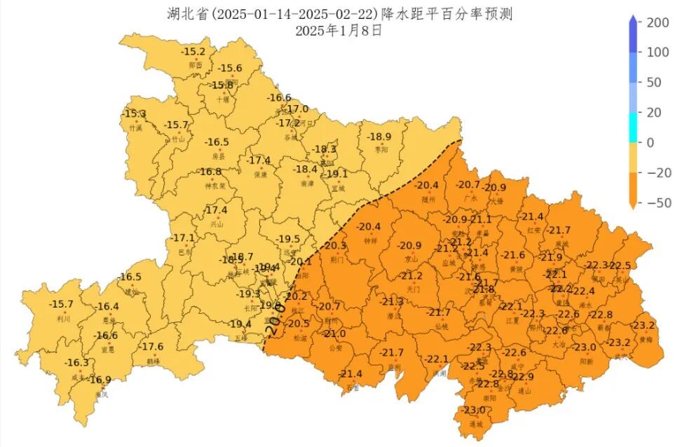 湖北省冬季天气气候主要受西伯利亚冷高压和南支槽影响。春运期(1月 14日至2月22日)西伯利亚高压和东亚冬季风继续维持偏弱,南支槽总体不活跃,冷空气和水汽整体偏弱,但在1月下旬至2月上旬存在着阶段性增强。