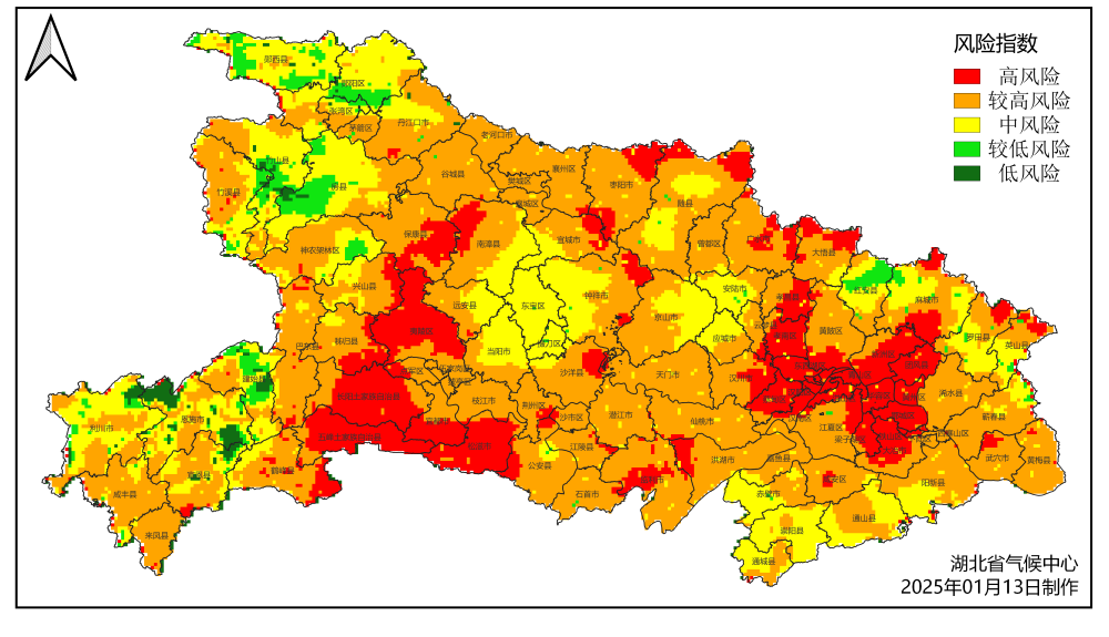 2025年1月14—16日湖北省冷空气人体健康风险等级