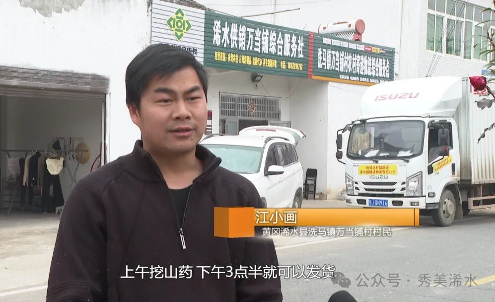 洗马镇万当铺村村民 江小画:现在物流车进村了,上午挖山药,下午3点半就可以发货,12月已经卖了将近10万块钱。