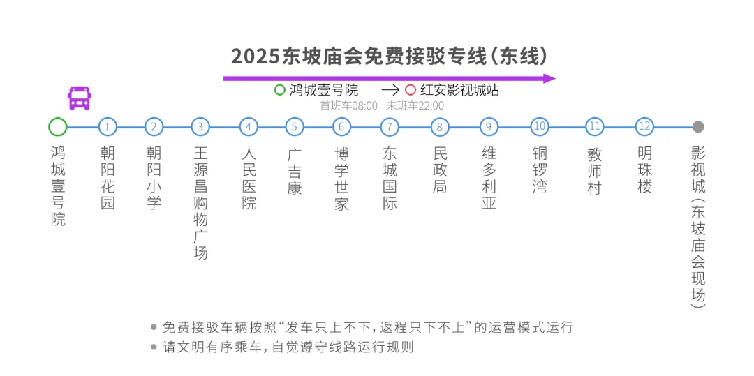 为了让游客在红安影视城新春灯会有更优质的游玩体验,红安开通3条2025东坡庙会免费接驳专线。在每个线路上,将设置多个配载点,方便游客就近上车。这些配载点将选择在大型社区、商场、公园和车站等人口密集区域,确保覆盖更多的游客群体。