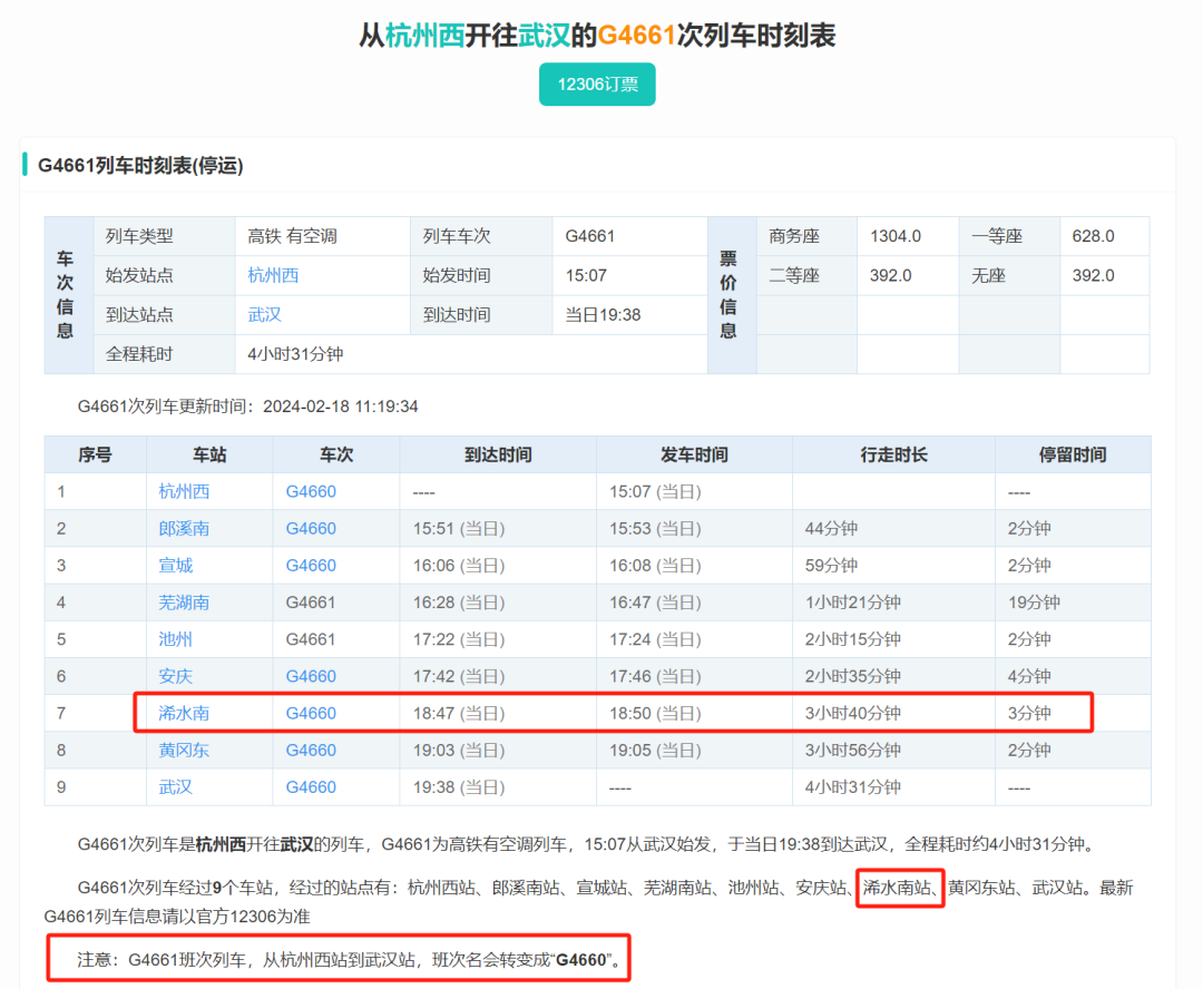 1月17-1月27日浠水新增临客1对为杭州西-武汉(G4661/0 G4659/62)。