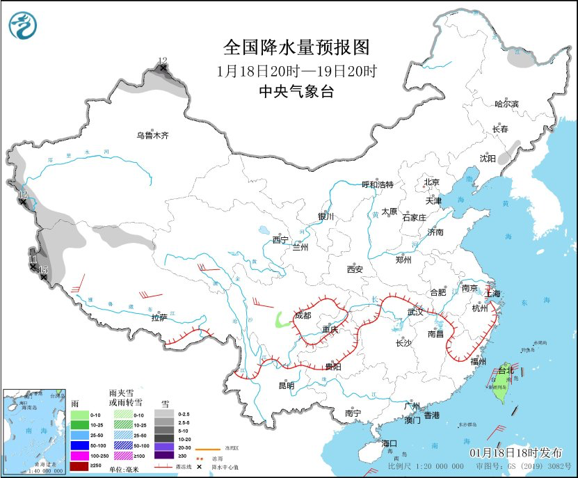 中央气象台预计,18日20时至19日20时,黑龙江西北部、新疆北疆北部和南疆西部山区、西藏西部等地部分地区有小到中雪,其中,新疆阿勒泰北部、南疆西部山区、西藏西部等地部分地区有大雪或暴雪。川西高原东南部、台湾岛等地部分地区有小雨。