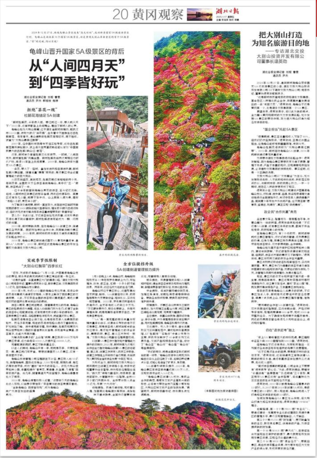 2024年12月27日,麻城龟峰山景区迎来“高光时刻”,成功跻身国家5A级旅游景区行列。龟峰山是湖北第16个国家5A级景区,却是黄冈大别山革命老区的首个5A级景区。“零”的突破,何以实现?
