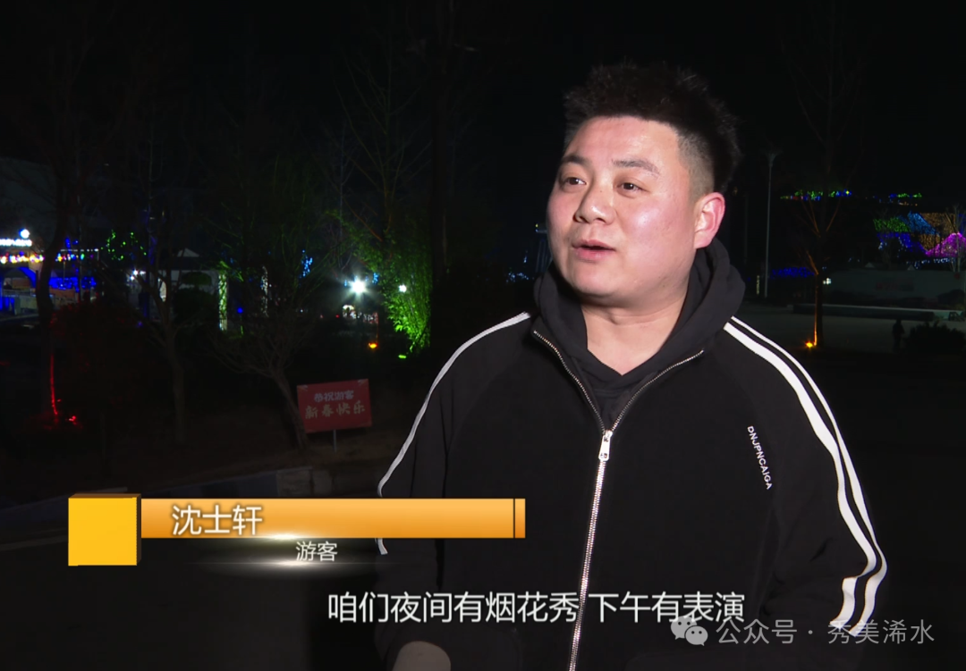 游客 沈士轩:我是从河北涿州过来的,过年放假过来玩。通过朋友分享抖音看到了,觉得挺好玩,就过来了。咱们夜间有烟花秀,下午有表演,我老家禁止燃放烟花,过来看到的烟花确实挺绚烂的,灯光设计感觉挺新颖的,我印象最深刻的还是田园风格,那些动物花灯。
