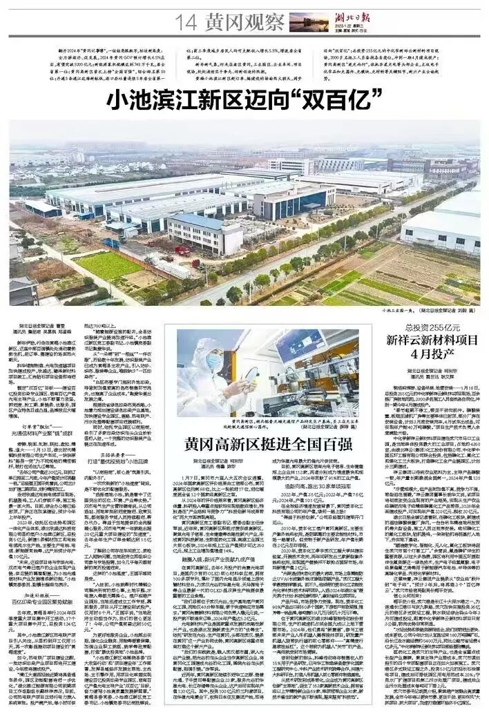 黄梅小池滨江新区赶订单、搞建设的场面热火朝天,阔步迈向“双百亿”;总投资255亿元的中化学新祥云新材料项目现场,2000多名施工人员奋战各自岗位,冲刺一期4月建成投产;黄冈高新区“逐光而行”,依托华星光电等头部企业,主攻电子化学品和光器件、光模块、光材料等关键环节,新兴产业全面起势。