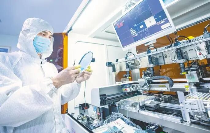 黄冈高新区,湖北铭普光磁光通信产品研发生产基地,员工在无尘车间赶制光通信核心器件。(湖北日报全媒记者 薛婷 摄)