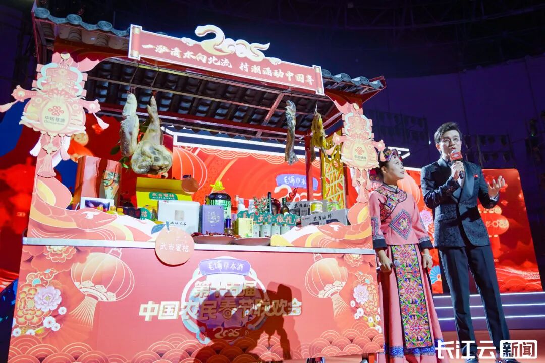 全国农品争“香”斗艳 展示“两山转化”成果绿水青山就是金山银山,从“一泓清水”到“两山转化”,生态保护与经济发展,奏响人与自然和谐共生的现代化新乐章。晚会现场,来自十堰等湖北省内以及全国各地的农业企业代表、三农达人和嘉鱼县潘家湾镇四邑村驻村第一书记等携优质农产品云集,湖北的江汉大米、潜江龙虾、荆楚生猪、武当山珍、武当蜜橘、房县黄酒、嘉鱼甘蓝等区域公用品牌和毛铺草本酒、良品铺子等企业品牌产品与全国农品交“香”辉映,争“香”斗艳,向全国观众端出了“农农”的年味大餐。