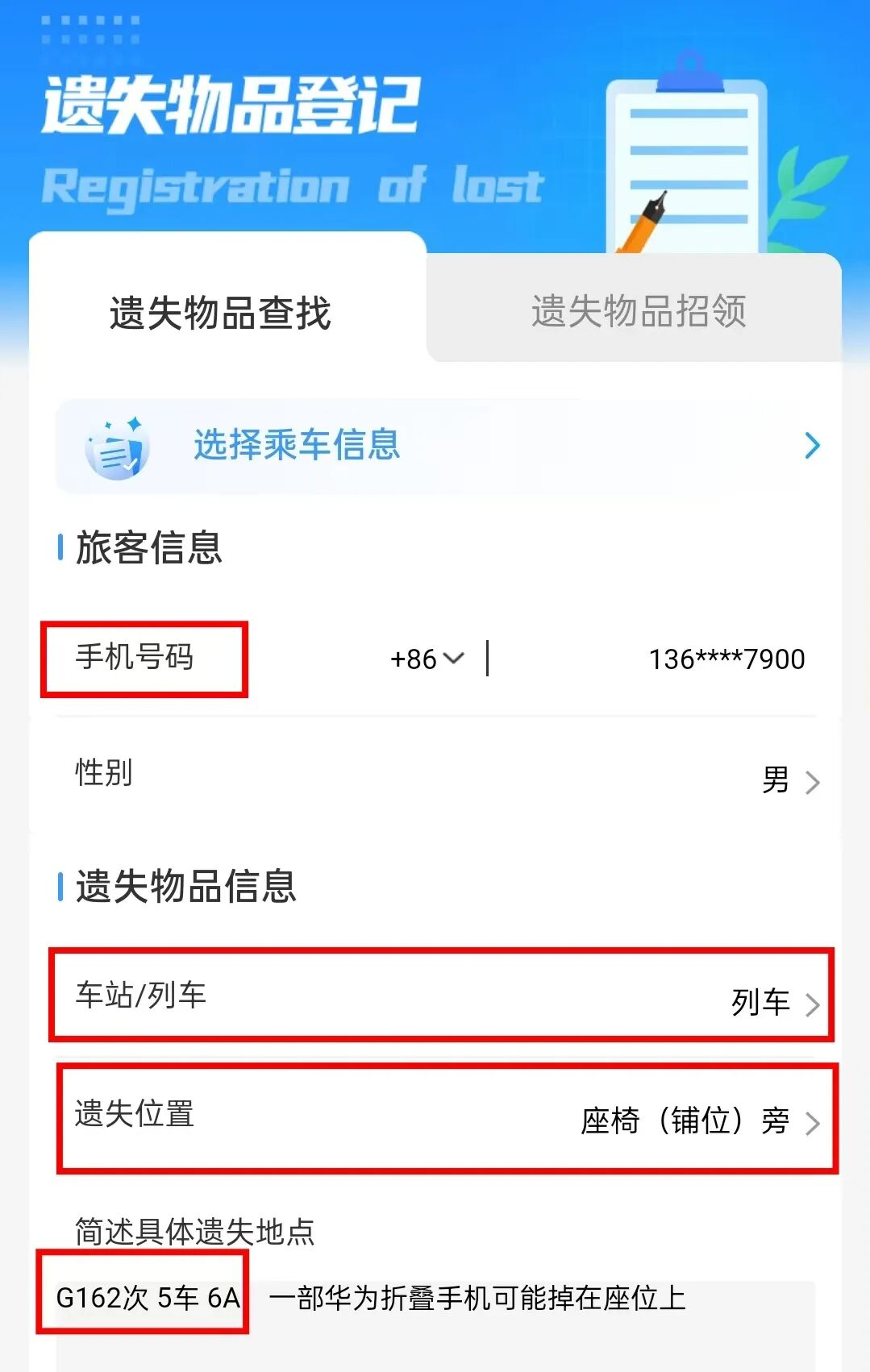 此前旅客张先生不慎将手机遗落在高铁列车的座椅上,抱着试试看的心态在App上提交遗失物品信息后,顺利从北京南站的失物招领处找回了手机。