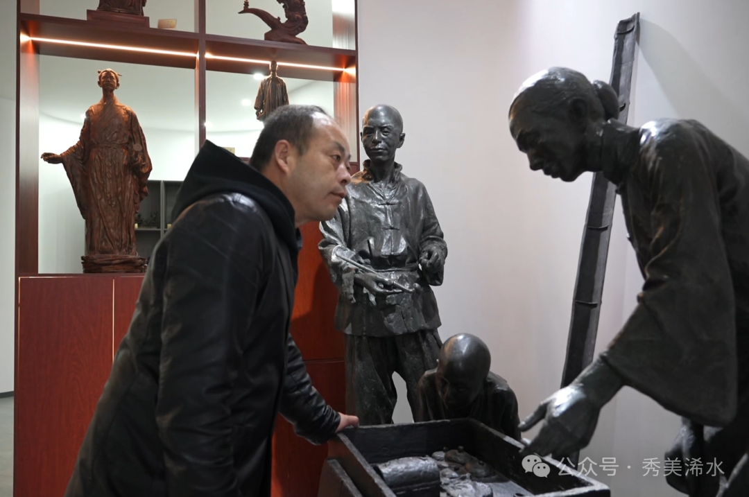 浠水泥塑非遗技艺第四代传承人 朱一林:做闻一多雕像的时候,从小时候的一个故事,这些上面去慢慢的了解他的一些资料。当你了解了他之后,就相当于在做作品的时候,就像跟他有一个对话,做着做着就越来越有感觉。