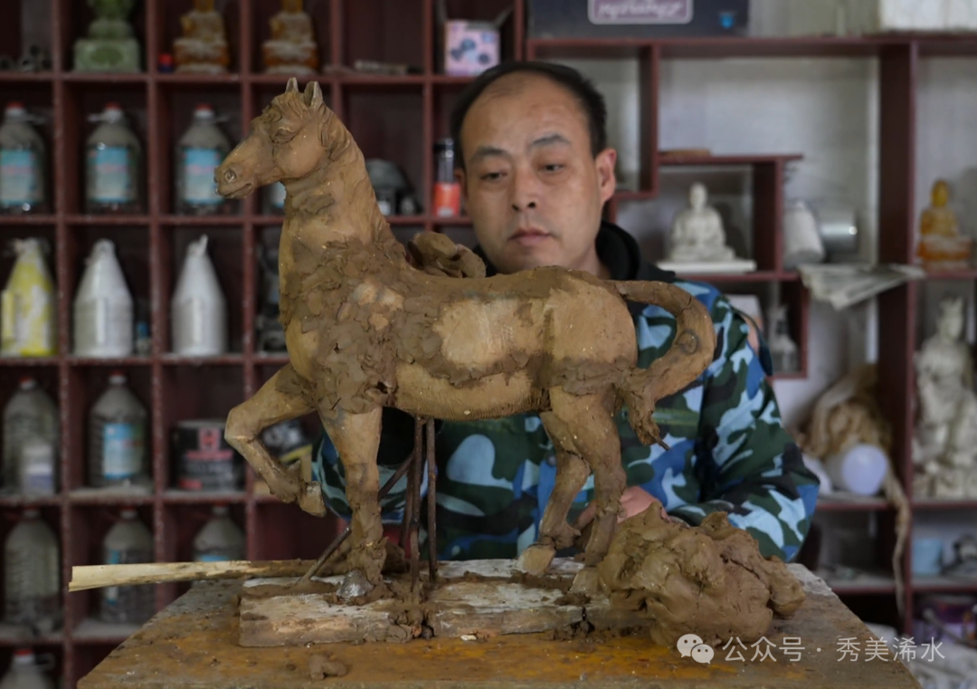 在学中干,在干中学。凭借扎实的家学功底,他在打工经历中磨炼技艺。2010年,朱一林带着技术毅然返乡创业,成立了自己的泥塑公司。在追求艺术的道路上,他追求与雕塑的心灵契合。