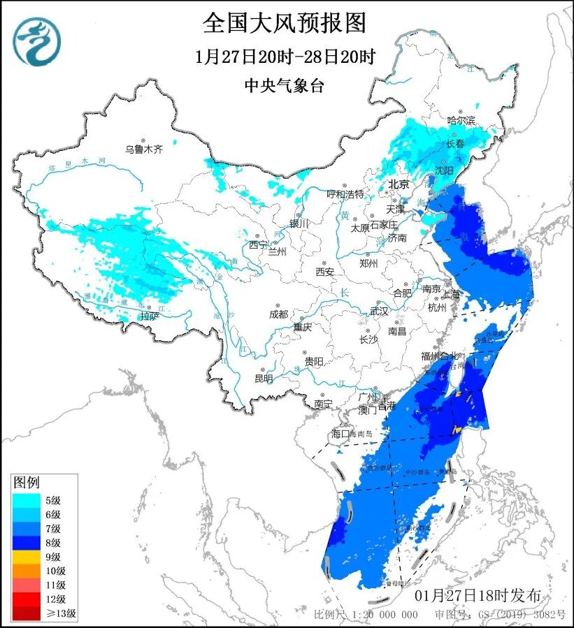 中央气象台27日18时发布大风蓝色预警:受冷空气影响,预计27日20时至28日20时,西藏中北部、内蒙古西部和东南部、吉林、辽宁、山东半岛等地部分地区将有5~6级、阵风7~8级的大风。