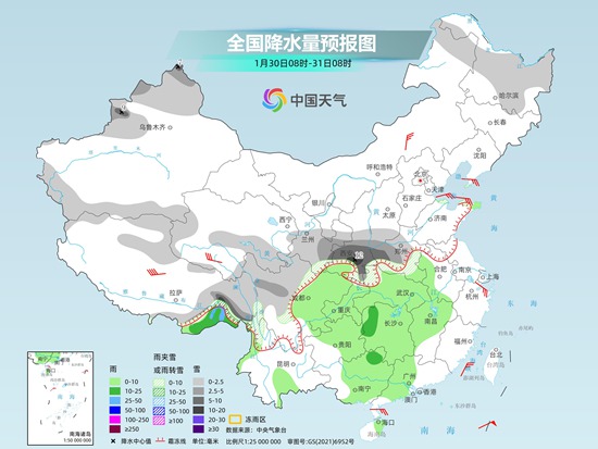 今天,东北地区和西南地区的雨雪范围进一步收缩,强度减弱,中东部大部地区维持晴好天气。不过从明天开始,新一轮雨雪过程将上线。中央气象台预计,1月30日至2月2日,青藏高原东部、西北地区东南部、华北南部、黄淮、江汉西部等地有小到中雪或雨夹雪,其中,陕西南部、河南西部、湖北西部及西藏东部等地的部分地区有大雪,局地暴雪;南方大部有小到中雨,局地大雨。