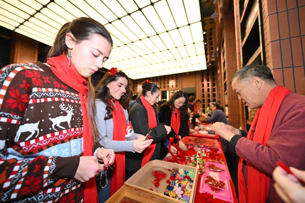 多国留学生在天津感受春节民俗。新华社记者 孙凡越 摄