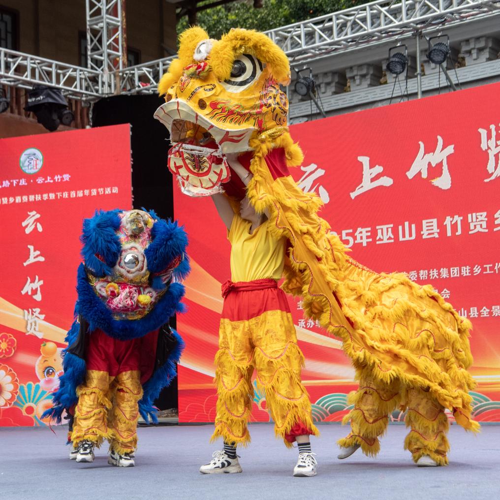 重庆市巫山县竹贤乡下庄村,村民演舞狮迎新春。新华社记者 唐奕 摄