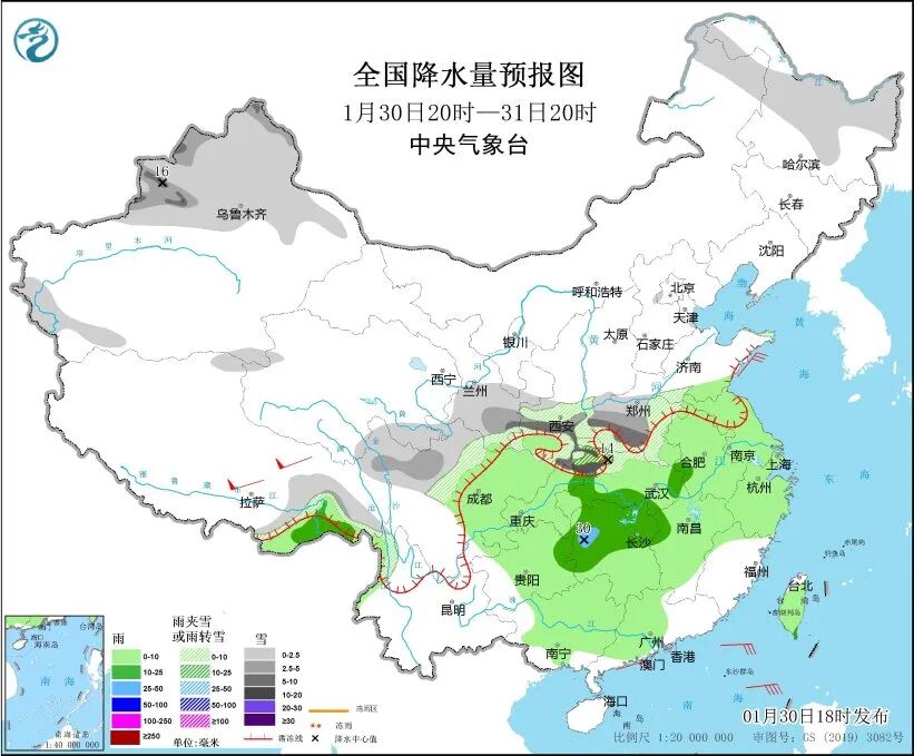 中央气象台预计,30日20时至31日20时,新疆北部、内蒙古东北部、黑龙江中北部、川西高原北部、甘肃东部、陕西南部、河南大部、湖北西北部等地部分地区有小到中雪或雨夹雪,其中,新疆北疆西部山区、陕西南部、河南南部和西部、湖北西北部等地部分地区有大到暴雪。西藏东南部、西南地区东部、江汉大部、江淮、江南大部、华南大部等地部分地区有小到中雨,局地有大雨。