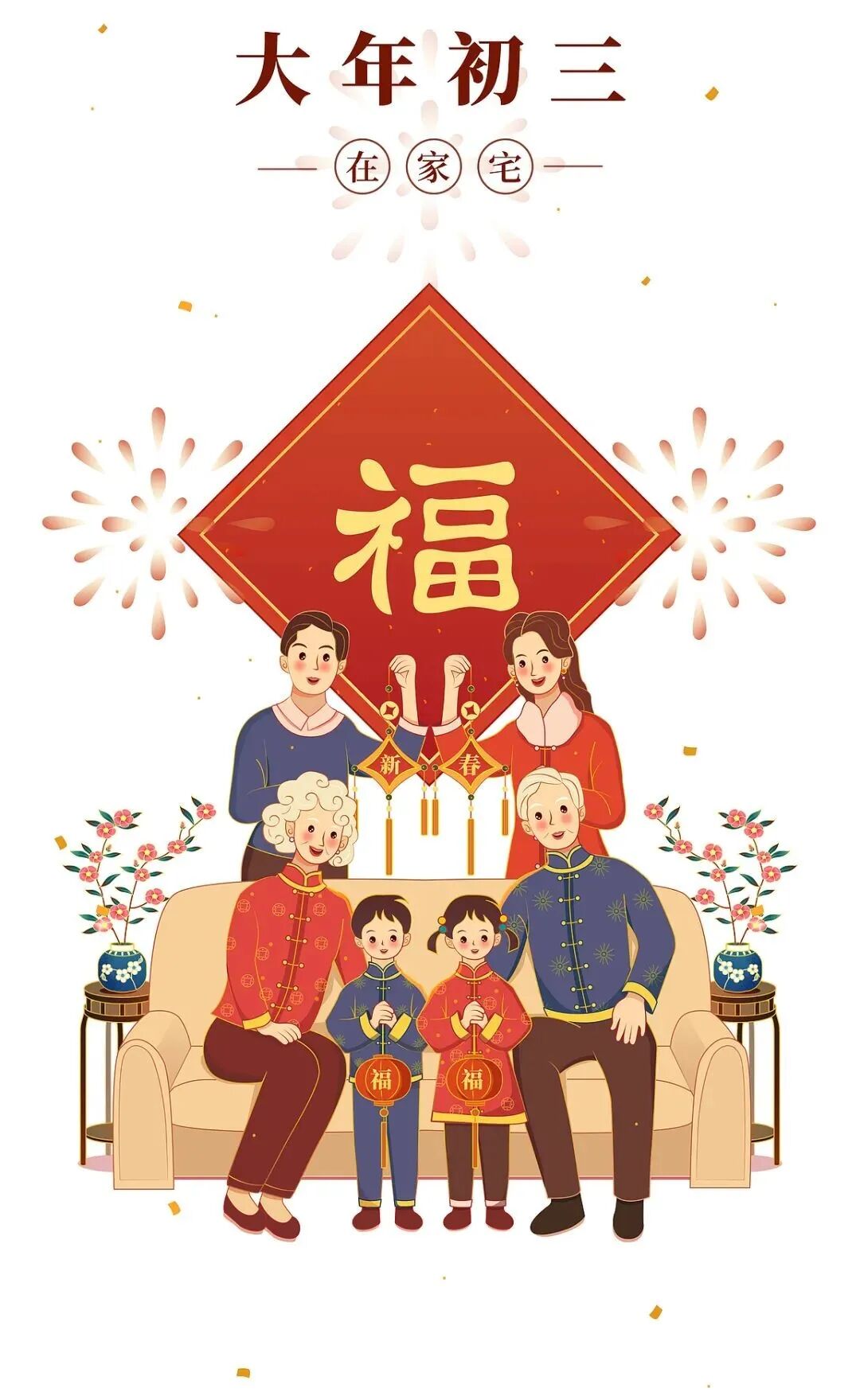 大年初三是赤狗日,还被称为“恶鬼日”,忌探亲访友。相传赤狗脾气颇为火爆,不太好说话,民间多认为正月初三极易与人发生口角争执,为了避免大过年的闹得不愉快,忌探亲访友,因此在正月初三这天,人们不外出走动,多会留在家中,也希望新年能够有个好的开端。