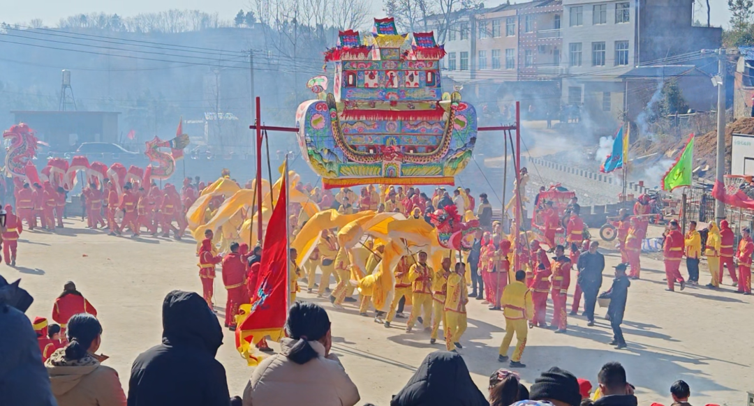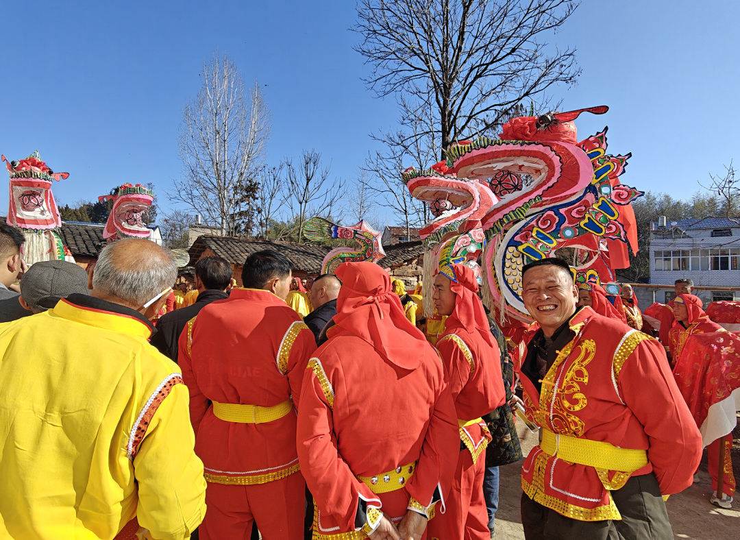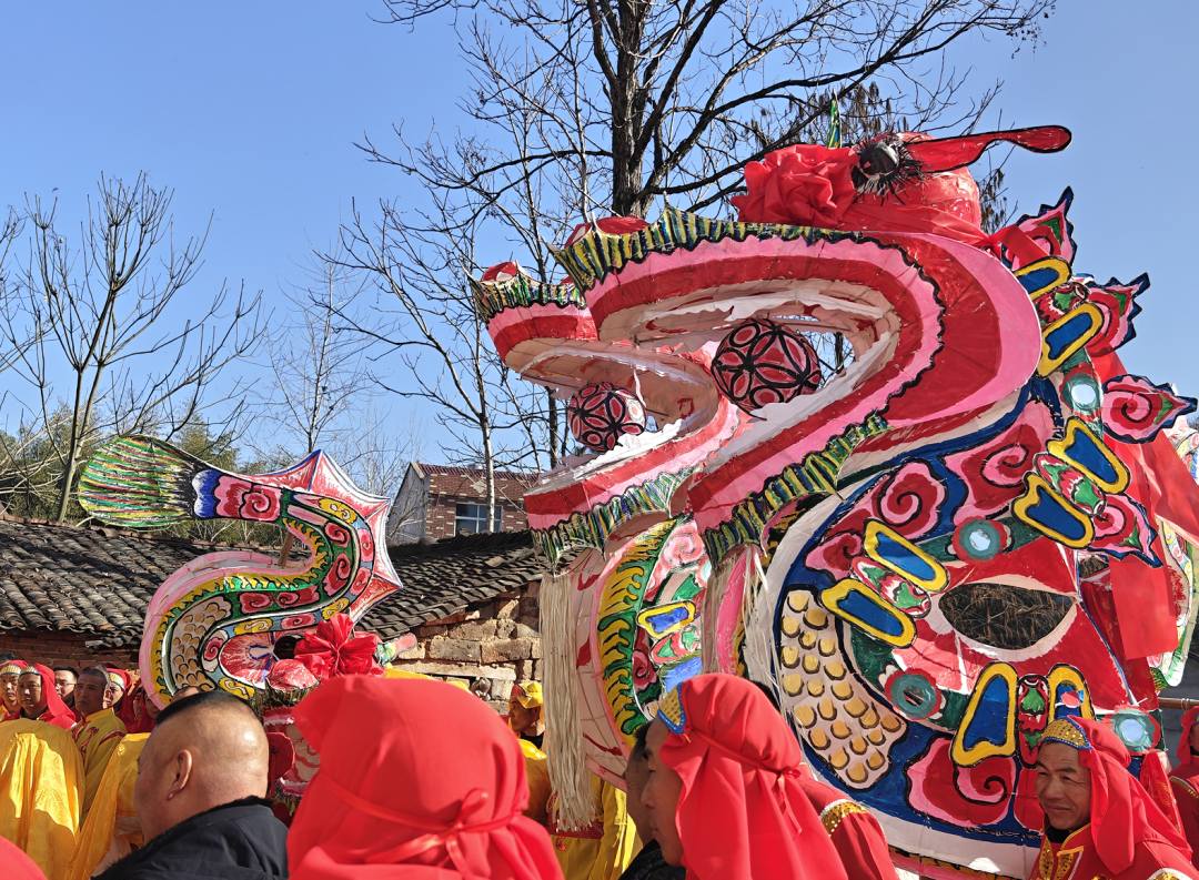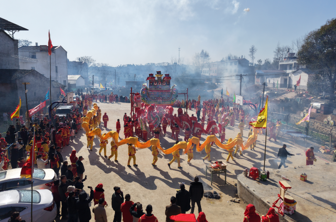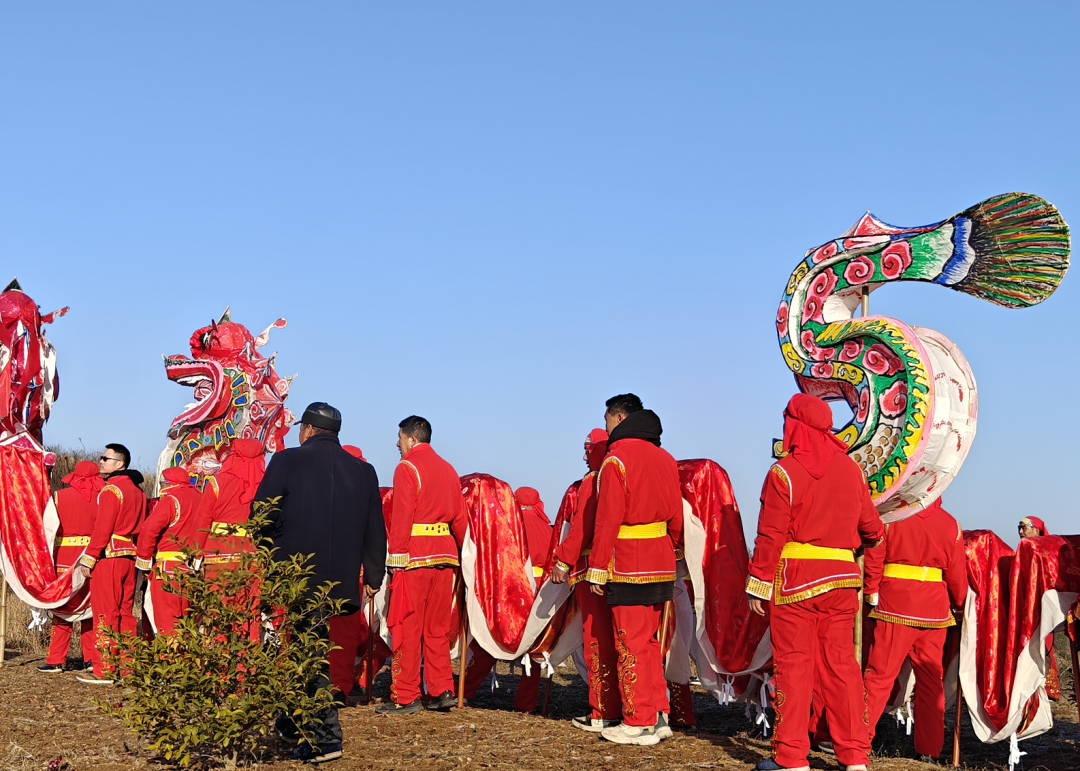 表演者们身着统一服装手持舞龙杆伴随着铿锵有力的锣鼓声一条条色彩斑斓的巨龙翻腾跳跃吸引了村民驻足观看大家纷纷拿出手机拍摄下这欢乐的场景