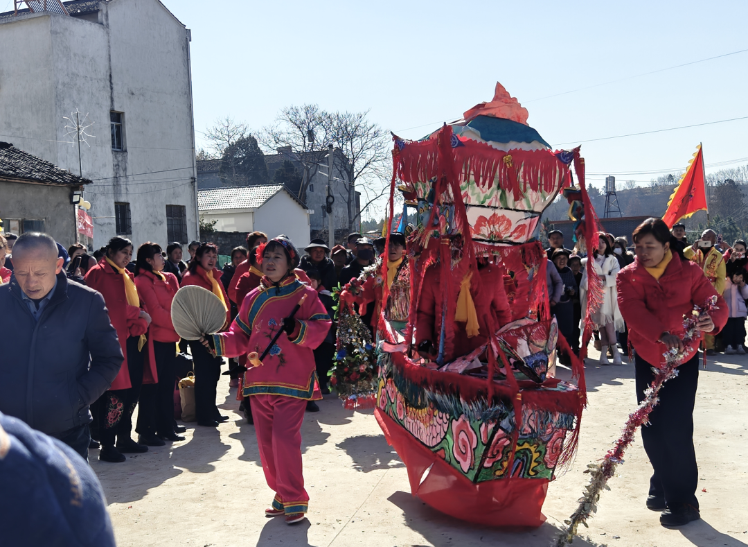 极具特色的踩莲船也粉墨登场表演者前行、后退、颠簸和陷泥犹如水面行船一般