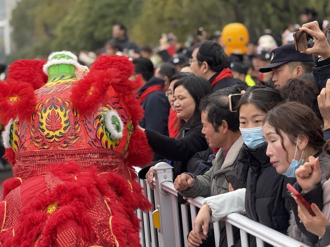 终点贸易广场,同样是一片欢腾的海洋,威风凛凛的锣鼓队、载歌载舞的采莲船、活灵活现的舞狮表演,以及悠扬婉转的黄梅戏等民俗节目轮番上演,让人目不暇接。现场还有黄冈名人巡游现场送“福”气,引得观众阵阵欢呼,气氛瞬间被推向了高潮。