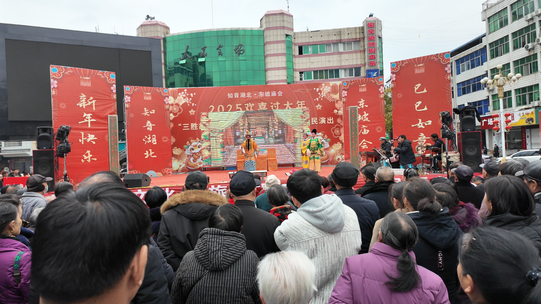 大年初四下午,罗田县人民广场人头攒动、热闹非凡,锣鼓声、喝彩声、欢笑声汇成一片。在“知音湖北·东坡庙会”2025欢喜过大年“三胜故里广场乐”罗田县春节文化惠民活动现场,洋溢着节日的热闹气氛,县文化馆联袂县平湖群星楚剧团为全县观众演出大型楚剧《满堂红》。原汁原味的唱腔,韵味十足的表演,或豪迈顿挫、或婉转悠扬,千余名群众和戏迷票友欢聚一堂,感受戏曲魅力,共度新春佳节。县委委员、副县长刘晓宇,县文旅局领导观看演出并慰问演职人员。
