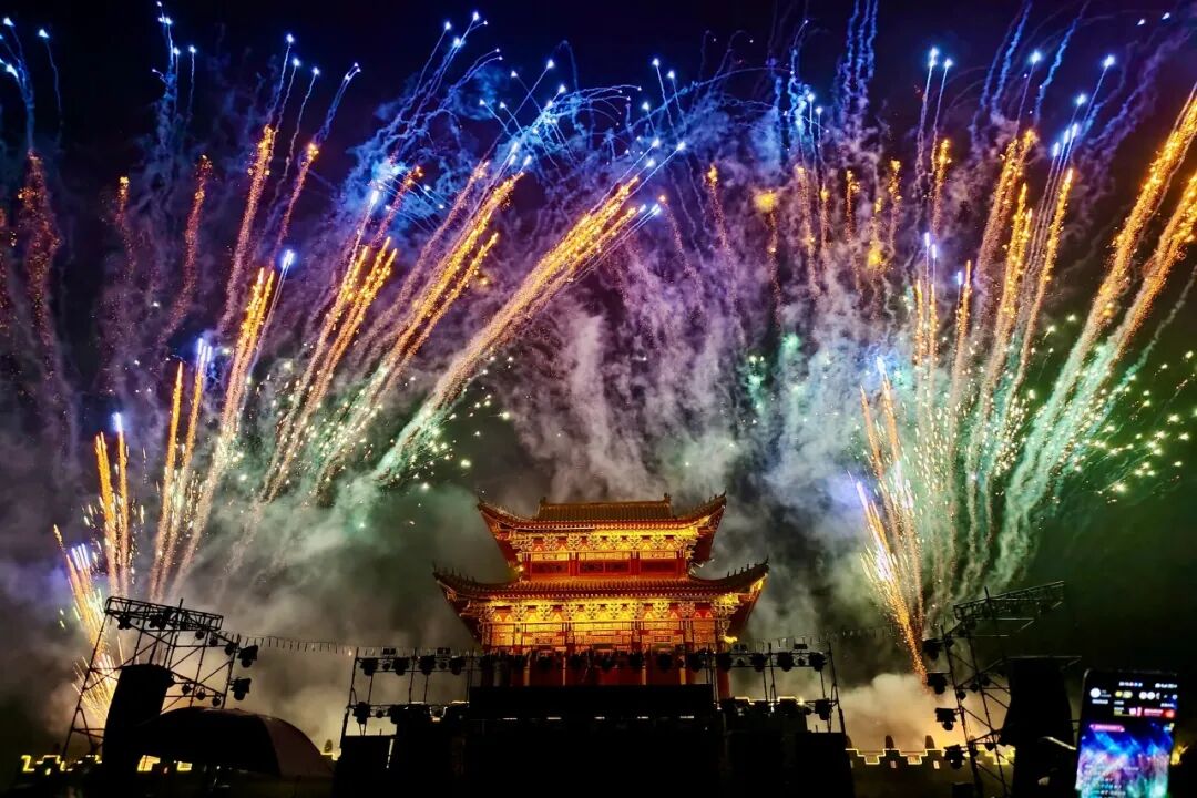 图\蕲春李时珍文化旅游区璀璨烟花夜景