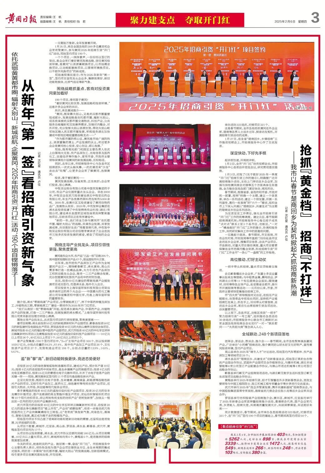1月3日,印发了《关于做好2025年一季度“开门红”招商引资工作的提示》,明确要广泛开展招商推介活动、主动上门拜访返乡企业家、加强与异地黄冈商会对接等五个方面具体任务措施,全力推动各地各部门谋定快动、闻风而动。