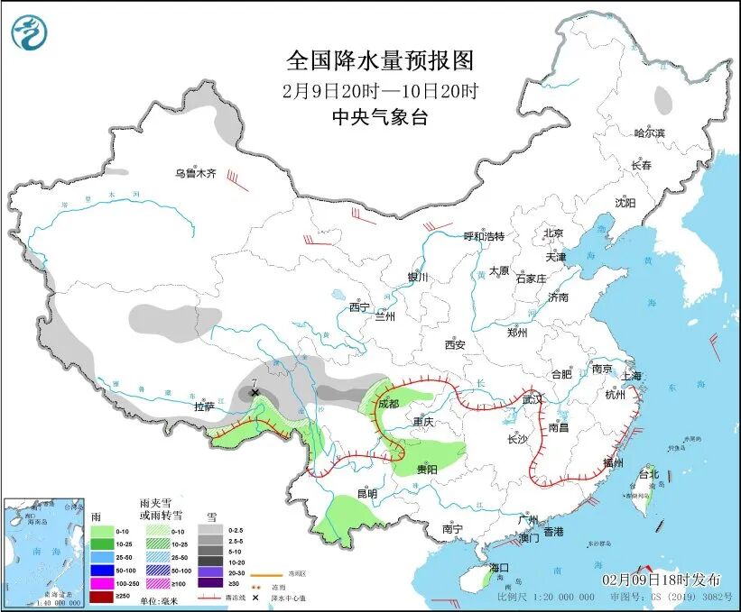 随着寒潮对我国影响的结束,10日全国大部分地区气温会有所回升。11日起,新一轮冷空气来袭,中东部将有4到6摄氏度降温,并伴有4到6级风,东北、华北及南方的部分地区有雨雪天气。中央气象台预计,9日20时至10日20时,新疆北部、西藏北部和东部、川西高原、黑龙江中部等地部分地区有小雪或雨夹雪。西藏东南部、四川盆地东部和南部、贵州中北部、云南南部、海南岛东部、台湾岛东部等地部分地区有小雨。