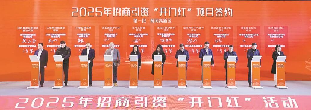 新城启航、企聚黄冈。市招商服务中心聚焦“项目建设年”,1月25日,在2025年招商引资开门红活动现场签约项目190个;春节期间,联合各地举办各类招商活动323场次,对接项目321个,签约项目58个。