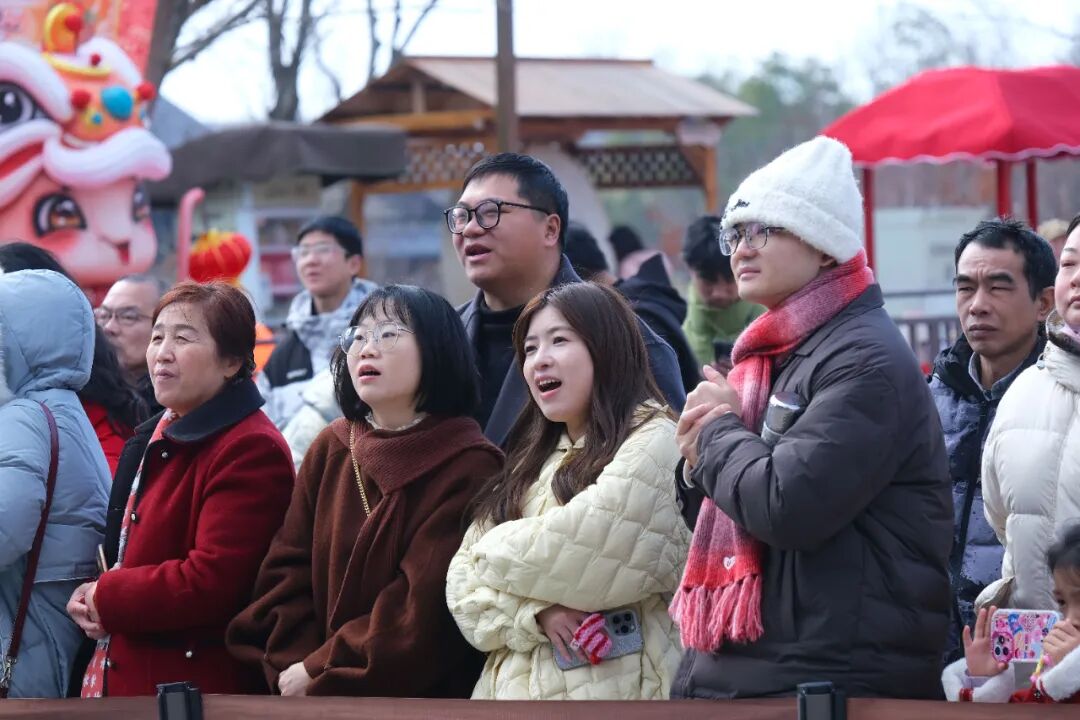 2月7日下午的演出,在国风舞蹈《探窗》中拉开序幕。熟悉的旋律响起,一群身着唐装的年轻舞者在商业街前小广场上翩翩起舞。游客们迅速自发围成半圆,有人把孩子扛上肩头,有人边看边拿手机拍摄。一曲结束,一名老年游客意犹未尽地问道:“这么快就演完了?”“快跟上,好戏还在后头呢!”旁人笑着提醒。