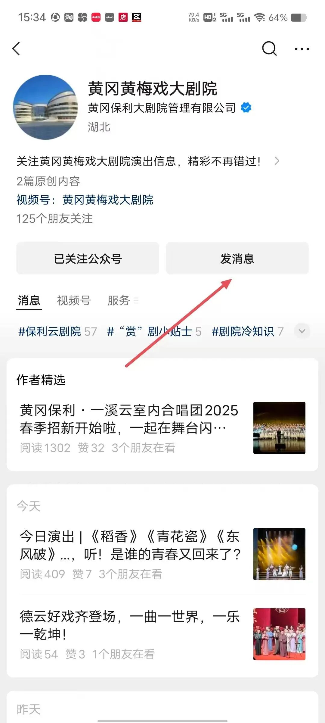 3.关注“黄冈黄梅戏大剧院”微信公众号,发送唱歌视频、参赛者姓名、手机号码到公众号后台。审核通过后,客服会回复是否参赛成功。