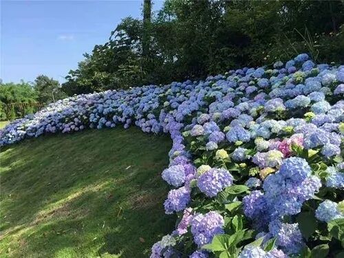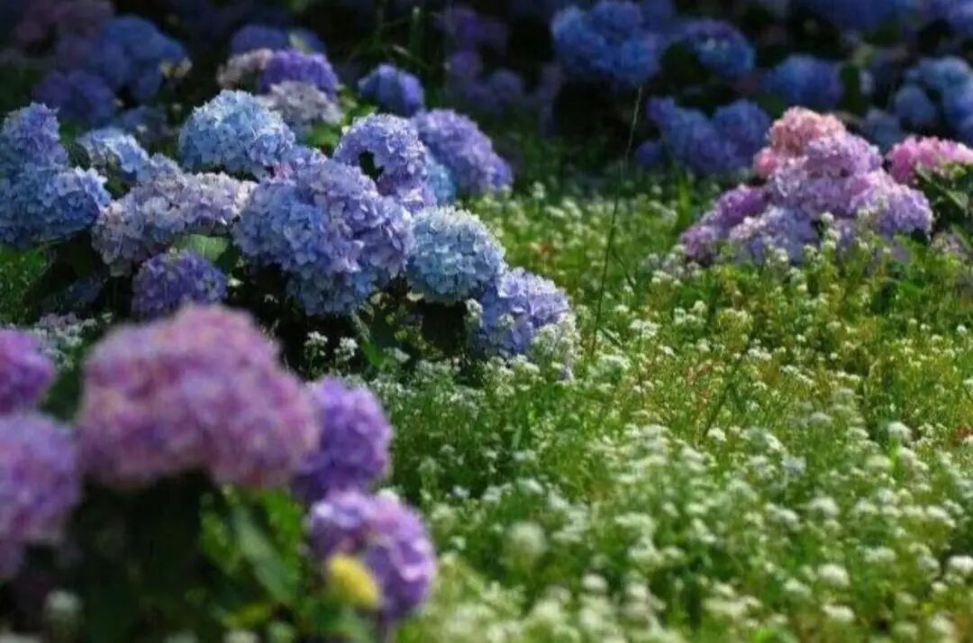 我居住的南方小城里,种着成片成群的绣球“无尽夏”,公园里、步道旁、运河边的绿化带,都被它们理直气壮地占领了。它们生长在长长的绿地之上,硬生生把一条绿道变成了一座花园,让人浮想联翩。六月的“无尽夏”美得端庄大气、一团欢喜,绝对是夏日的视觉盛宴。神奇的是,即使上千株“无尽夏”都开了,空气中也不见一丝妖娆和浮躁。