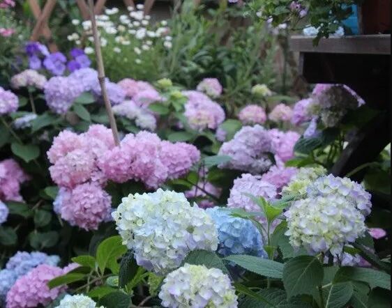 闲暇时,我会在城市公园徜徉,在运河岸边快走,在林荫道上漫步,我的目光总会有意无意地投向那些“无尽夏”——它们好似无处不在。置身其中,仿佛进入了莫奈画笔下的花园。大朵大朵的“无尽夏”肆意开放,盛花期的时候甚至会压弯花枝,其玄幻的变色能力也让人惊叹:一会浅粉,一会深粉,一会儿淡紫,一会儿蓝紫……这是鲁迅文章里的“绯红轻云径”,是李商隐笔下的“烂漫几多时”……每每看着,心情就变得愉快起来。张九龄在《感遇》中曾感慨:“草木有本心,何求美人折。”草木顺自然之本心生长,并没有互相争奇斗艳,春夏秋冬,各有自己的季节,红蓝黄紫,各有自己的格调。花开有序,物各所属。无论生于幽林还是闹市,它们各有自己的宿命和使命,顺时而发,遇风而长,花开自在,各有其华。