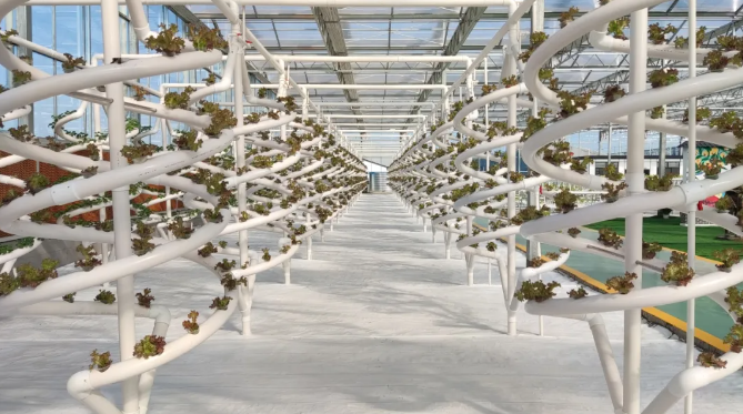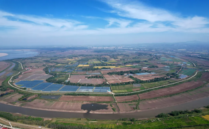 在福耕公司种植基地里,纵目四望,一千多亩平坦的土地上,村垸相连,田畴阡陌,耕机往来穿梭,俨然如一幅现代版的世外桃源图。