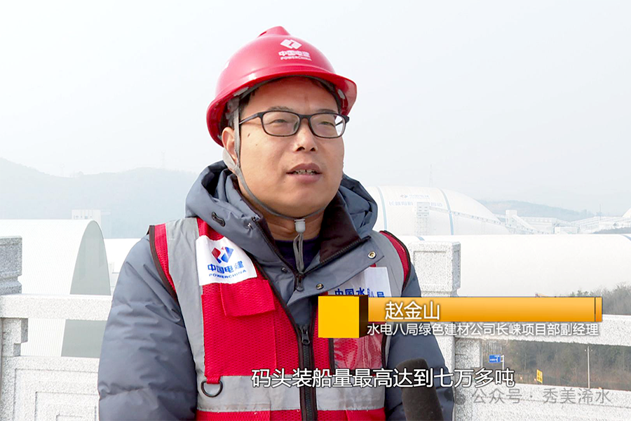 水电八局绿色建材公司长崃项目部副经理 赵金山:目前人员已基本全部返岗,生产也恢复正常。现场作业人员有200多号人,矿山这边最高日产量达到了九万多吨,码头装船量最高达到七万多吨。一季度计划生产目标是470万吨(砂石骨料),码头装船430万吨(砂石骨料),比去年同期增长30%。