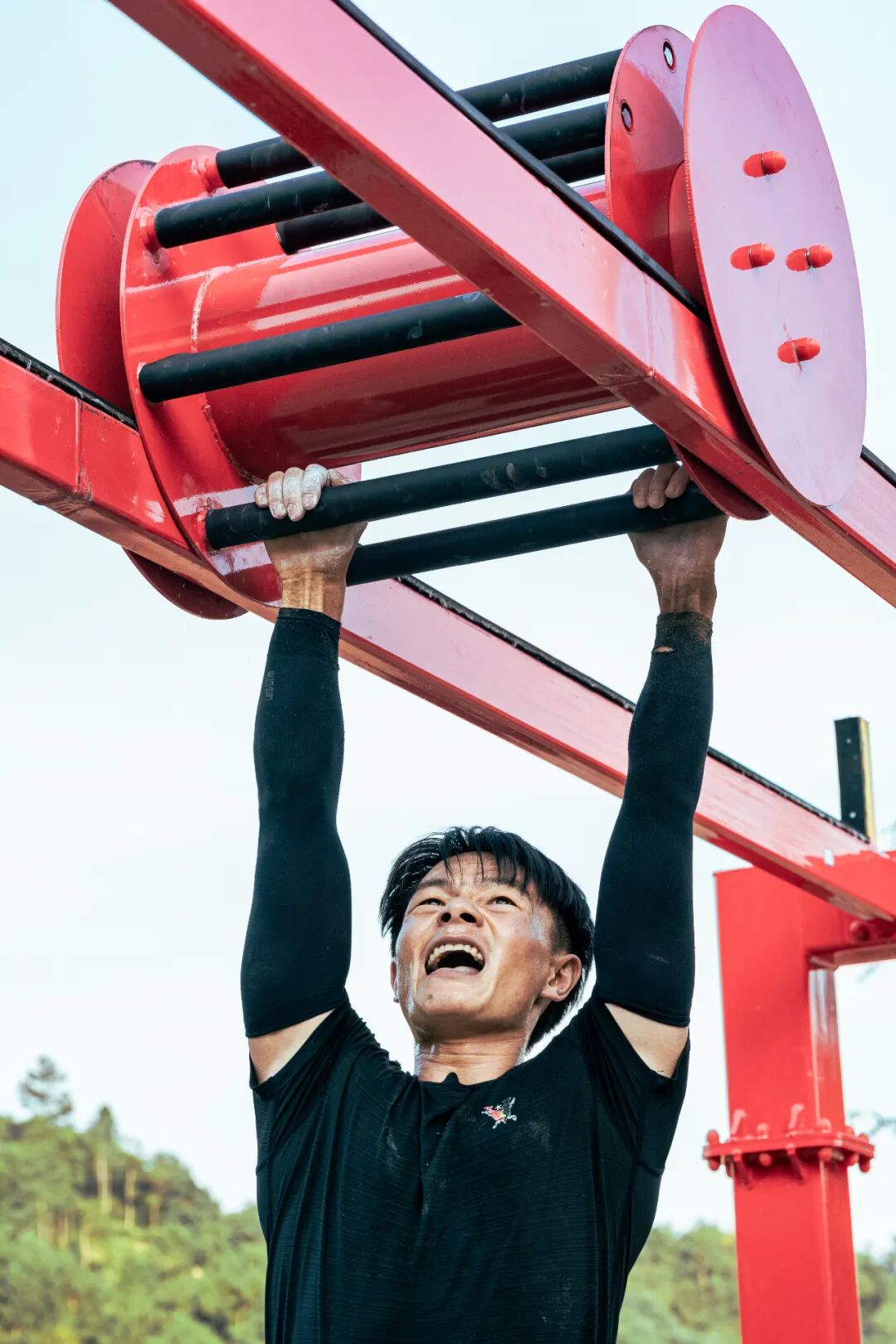 与队友在“极限越障”项目中