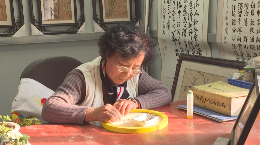 今年70岁的陈荣勇是一名退休教师,投身五谷画创作近30个年头。陈荣勇创作的五谷画各式各样,既有人物、动物,也有农村、农民。她通过绘制五谷画,惟妙惟肖地展示出不同年代特色的生活场景,画面逼真、栩栩如生。