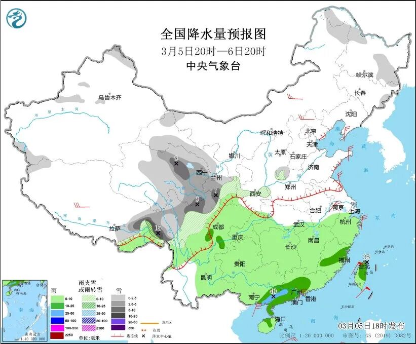 中央气象台预计,5日20时至6日20时,西藏东部、青海中东部、甘肃西部和南部、川西高原中北部、山西东南部、内蒙古东北部、黑龙江西北部和东南部、吉林东部等地的部分地区有小到中雪或雨夹雪,其中,西藏东部、青海北部、甘肃南部、川西高原北部等地部分地区有大雪,局地暴雪。江南、西南地区大部、华南、台湾岛等地部分地区有小到中雨,其中,广西东南部沿海、广东中西部、台湾岛北部等地部分地区有大雨。