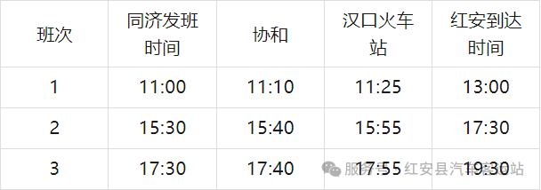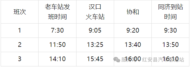 红安客运增加红安至协和同济途经汉口火车站“爱心”专线班次,具体如下: