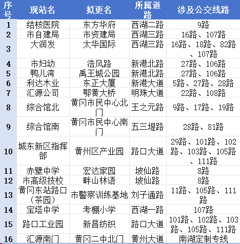 因近年来城市发展和部分道路改造、周围建筑变更等因素,我市城区出现部分实际地名与公交线路站点名称不一致的情况。为向广大市民提供更精准、更明晰的公交出行指南,经相关部门共同商议,拟对“结核病医院”等16个公交站点进行更名,具体如下: